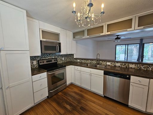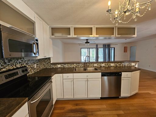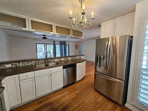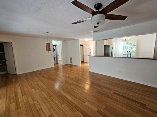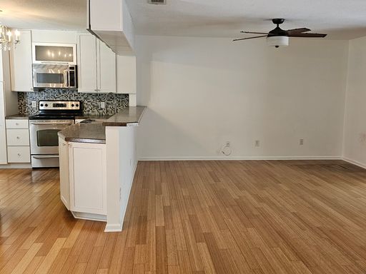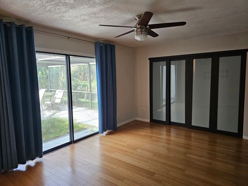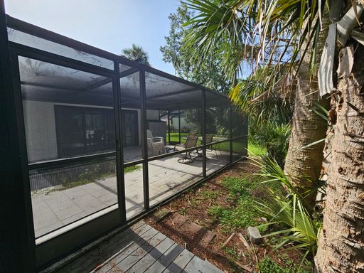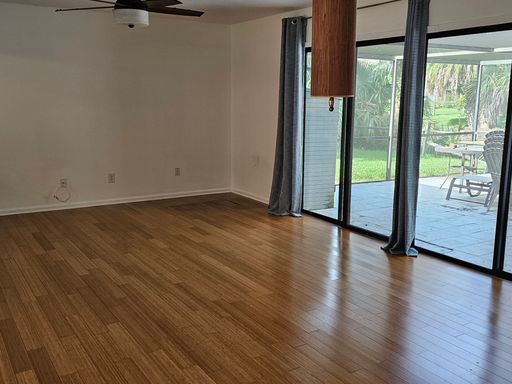 This charming 2-bedroom, 2 bath bungalow located in the heart of TPC Sawgrass is everything you have been looking for. Enjoy sitting peacefully in the screened in lanai overlooking the stream. This home has many updates, bamboo wood flooring throughout, porcelain tile in the bathrooms, knock down ceilings throughout, tiled lanai with garden area cut out, replumbed, sliding glass doors, lighting fixtures, ceiling fans and shelving for storage. In the kitchen are wood Kraftmaid Cabinets with built-in pull-out pantry, and stainless appliances.